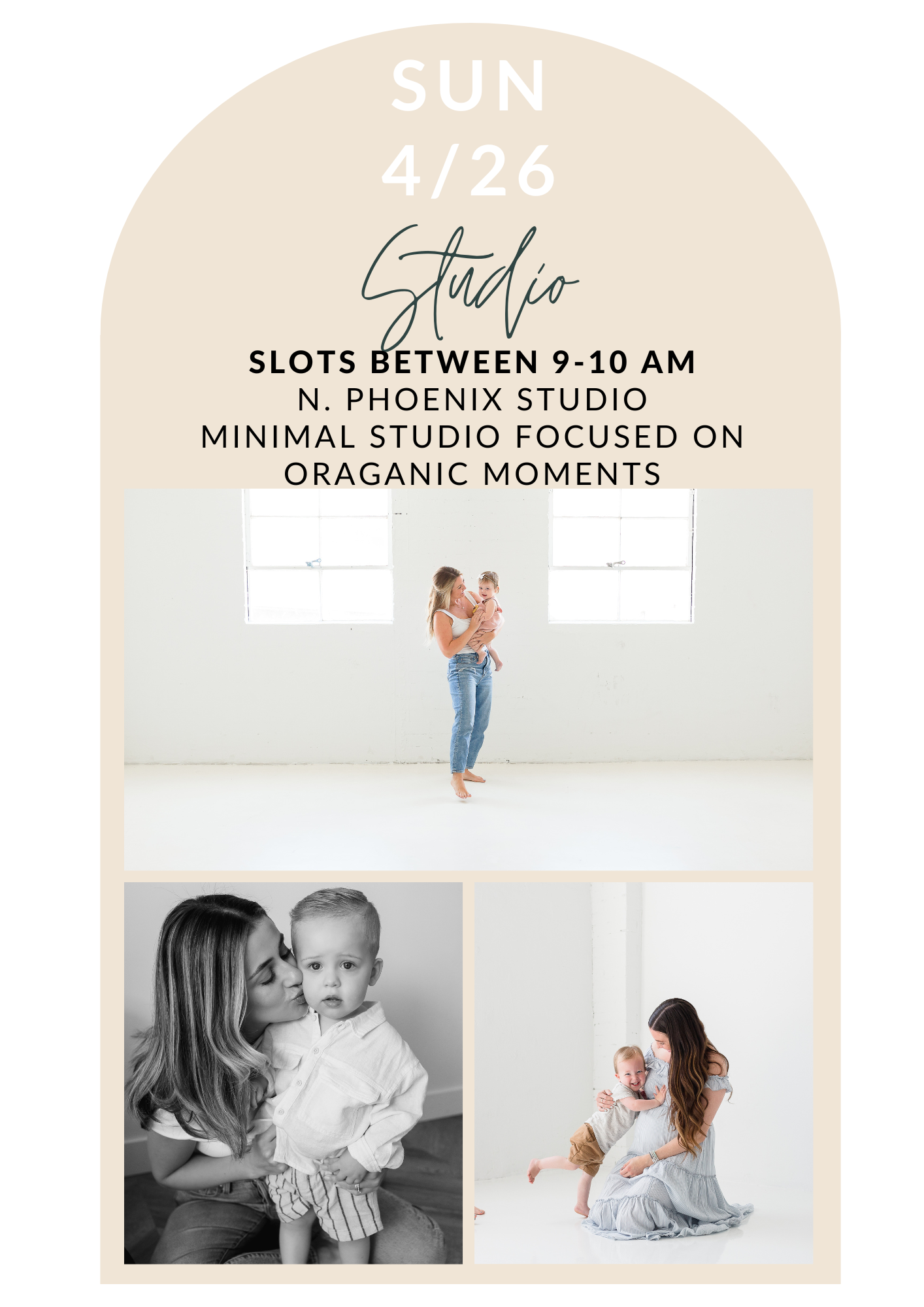 Minimal vibes with options for florals. Perfect for focusing on your sweet, organic moments. Photos will be delivered in time for Mother’s Day.