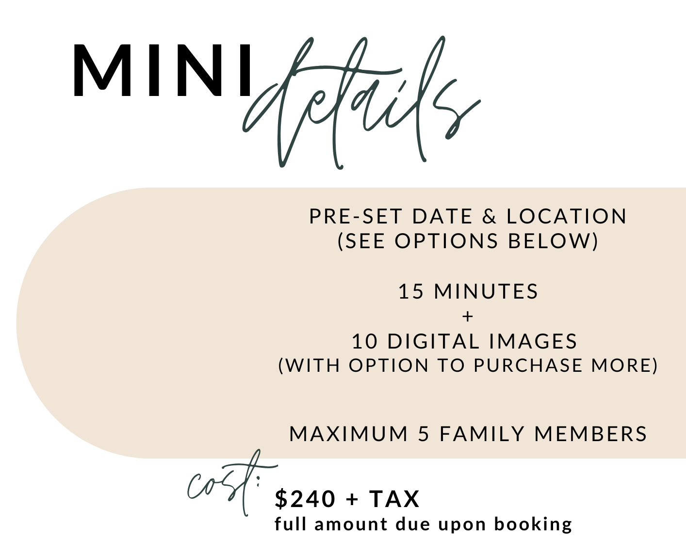 Once I see your reservation, you will receive an email from me with your project proposal. Project proposals are due back within 24 hours to secure your mini session spot.